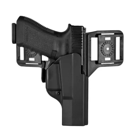 The holster is mounted on an "UP & DOWN" loop kit